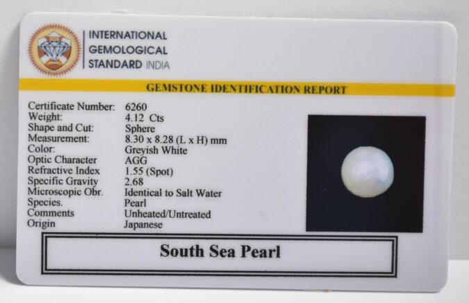 Certified South Sea Pearl 4.12 Ct.(4+ Ratti) in Sphere shape