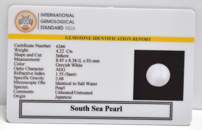 Beautiful 4.22 Cts South Sea Pearl (AAA+-Mines) sva 4+ Ratti SOUTH SEA PEARL. Free Horoscope & Free Pundit Ji Astrological Advise / Consultation. Original Natural Lab certified gems by IGI GTL / Birth stones / Large Gem Selection of shree shubh Rashi Ratan Vedic dhan at Gem Mines. May Bhagwan Brahma, Vishnu, Shiv & Universe bless you.