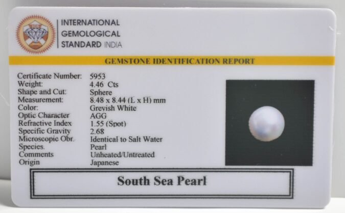 Certified South Sea Pearl 4.46 Ct.(4+ Ratti) in Sphere shape