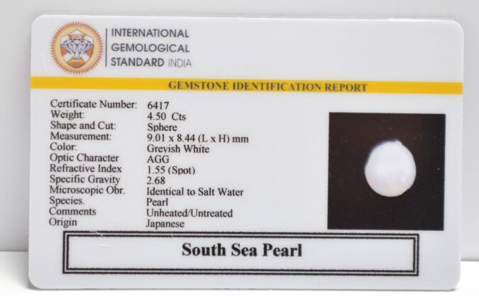 Certified South Sea Pearl 4.5 Ct.(5+ Ratti) in Sphere shape