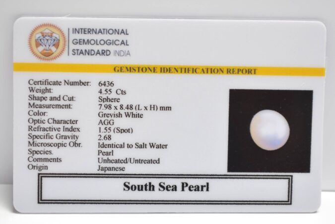 Beautiful 4.55 Cts South Sea Pearl (AAA+-Mines) sva 5+ Ratti SOUTH SEA PEARL. Free Horoscope & Free Pundit Ji Astrological Advise / Consultation. Original Natural Lab certified gems by IGI GTL / Birth stones / Large Gem Selection of shree shubh Rashi Ratan Vedic dhan at Gem Mines. May Bhagwan Brahma, Vishnu, Shiv & Universe bless you.