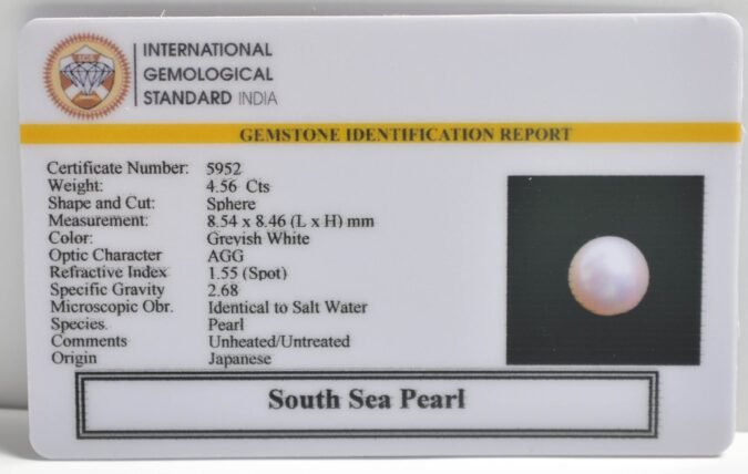Beautiful 4.56 Cts South Sea Pearl (Top+-Mines) sva 5+ Ratti SOUTH SEA PEARL. Free Horoscope & Free Pundit Ji Astrological Advise / Consultation. Original Natural Lab certified gems by IGI GTL / Birth stones / Large Gem Selection of shree shubh Rashi Ratan Vedic dhan at Gem Mines. May Bhagwan Brahma, Vishnu, Shiv & Universe bless you.