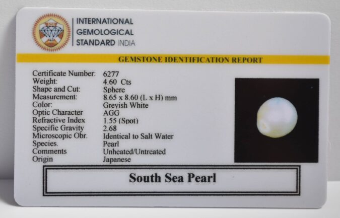 Certified South Sea Pearl 4.6 Ct.(5+ Ratti) in Sphere shape