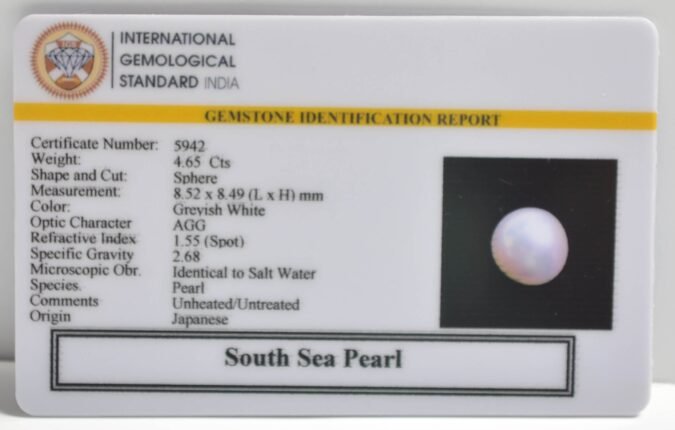 Beautiful 4.65 Cts South Sea Pearl (Top+-Mines) sva 5+ Ratti SOUTH SEA PEARL. Free Horoscope & Free Pundit Ji Astrological Advise / Consultation. Original Natural Lab certified gems by IGI GTL / Birth stones / Large Gem Selection of shree shubh Rashi Ratan Vedic dhan at Gem Mines. May Bhagwan Brahma, Vishnu, Shiv & Universe bless you.