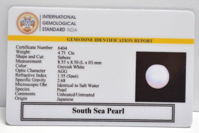 Beautiful 4.71 Cts South Sea Pearl (AAA+-Mines) sva 5+ Ratti SOUTH SEA PEARL. Free Horoscope & Free Pundit Ji Astrological Advise / Consultation. Original Natural Lab certified gems by IGI GTL / Birth stones / Large Gem Selection of shree shubh Rashi Ratan Vedic dhan at Gem Mines. May Bhagwan Brahma, Vishnu, Shiv & Universe bless you.