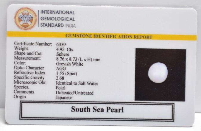 Certified South Sea Pearl 4.92 Ct.(5+ Ratti) in Sphere shape