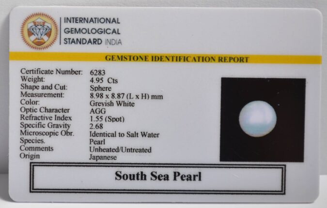 Certified South Sea Pearl 4.95 Ct.(5+ Ratti) in Sphere shape