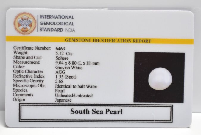 Certified South Sea Pearl 5.12 Ct.(5+ Ratti) in Sphere shape