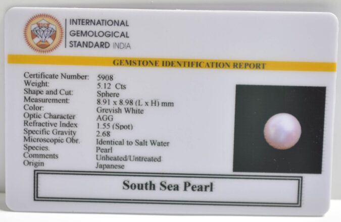 Certified South Sea Pearl 5.12 Ct.(5+ Ratti) in Sphere shape