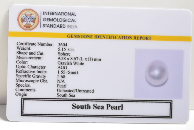Beautiful 5.15 Cts South Sea Pearl (AAA+-Mines) sva 5+ Ratti SOUTH SEA PEARL. Free Horoscope & Free Pundit Ji Astrological Advise / Consultation. Original Natural Lab certified gems by IGI GTL / Birth stones / Large Gem Selection of shree shubh Rashi Ratan Vedic dhan at Gem Mines. May Bhagwan Brahma, Vishnu, Shiv & Universe bless you.