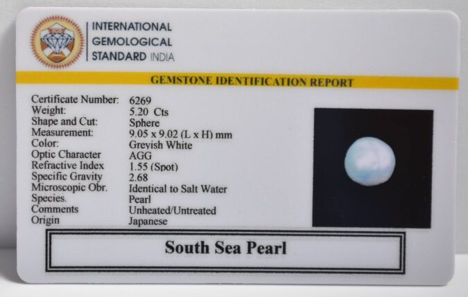 Certified South Sea Pearl 5.2 Ct.(5+ Ratti) in Sphere shape