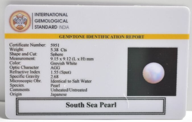 Beautiful 5.38 Cts South Sea Pearl (Top+-Mines) sva 5+ Ratti SOUTH SEA PEARL. Free Horoscope & Free Pundit Ji Astrological Advise / Consultation. Original Natural Lab certified gems by IGI GTL / Birth stones / Large Gem Selection of shree shubh Rashi Ratan Vedic dhan at Gem Mines. May Bhagwan Brahma, Vishnu, Shiv & Universe bless you.
