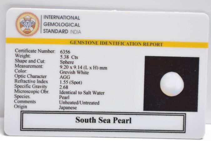 Beautiful 5.38 Cts South Sea Pearl (AAA+-Mines) sva 5+ Ratti SOUTH SEA PEARL. Free Horoscope & Free Pundit Ji Astrological Advise / Consultation. Original Natural Lab certified gems by IGI GTL / Birth stones / Large Gem Selection of shree shubh Rashi Ratan Vedic dhan at Gem Mines. May Bhagwan Brahma, Vishnu, Shiv & Universe bless you.