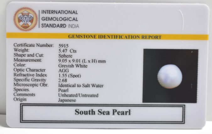 Beautiful 5.47 Cts South Sea Pearl (Top+-Mines) sva 6+ Ratti SOUTH SEA PEARL. Free Horoscope & Free Pundit Ji Astrological Advise / Consultation. Original Natural Lab certified gems by IGI GTL / Birth stones / Large Gem Selection of shree shubh Rashi Ratan Vedic dhan at Gem Mines. May Bhagwan Brahma, Vishnu, Shiv & Universe bless you.