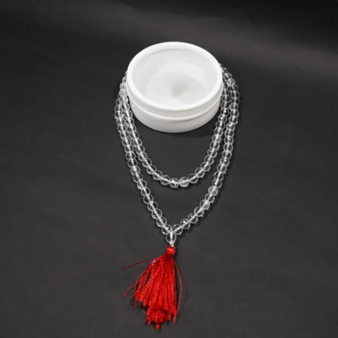 Each bead is cut with precision to enhance both its visual appeal and energetic strength. The 108 beads + 1 guru bead represent spiritual completeness and are traditionally used in mantra chanting (jaap), meditation, and prayer practices. The cooling nature of sphatik also helps balance energies and promote inner peace.