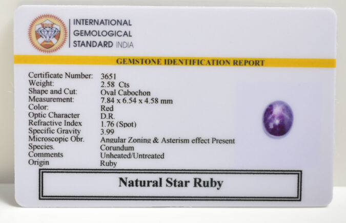 Beautiful 2.58 Cts Natural Star Ruby (Top-Mines) sva 2+ Ratti STAR RUBY. Free Horoscope & Free Pundit Ji Astrological Advise / Consultation. Original Natural Lab certified gems by IGI GTL / Birth stones / Large Gem Selection of shree shubh Rashi Ratan Vedic dhan at Gem Mines. May Bhagwan Brahma, Vishnu, Shiv & Universe bless you.