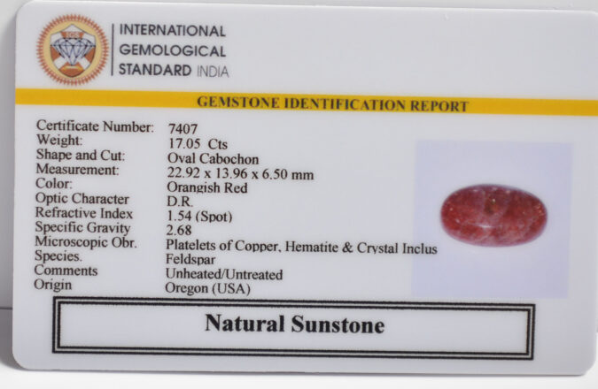 Beautiful 17.05 Cts Natural Sunstone (AAA+-Mines) sva 18+ Ratti SUNSTONE. Free Horoscope & Free Pundit Ji Astrological Advise / Consultation. Original Natural Lab certified gems by IGI GTL / Birth stones / Large Gem Selection of shree shubh Rashi Ratan Vedic dhan at Gem Mines. May Bhagwan Brahma, Vishnu, Shiv & Universe bless you.