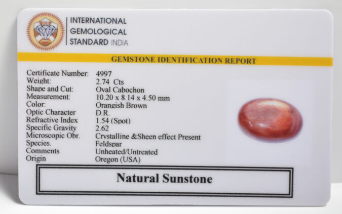 Beautiful 2.74 Cts Natural Sunstone (Top+-Mines) sva 3+ Ratti SUNSTONE. Free Horoscope & Free Pundit Ji Astrological Advise / Consultation. Original Natural Lab certified gems by IGI GTL / Birth stones / Large Gem Selection of shree shubh Rashi Ratan Vedic dhan at Gem Mines. May Bhagwan Brahma, Vishnu, Shiv & Universe bless you.