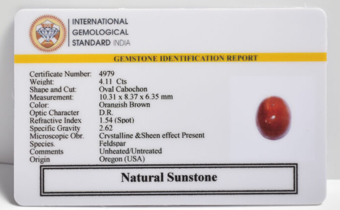 Beautiful 4.11 Cts Natural Sunstone (Top+-Mines) sva 4+ Ratti SUNSTONE. Free Horoscope & Free Pundit Ji Astrological Advise / Consultation. Original Natural Lab certified gems by IGI GTL / Birth stones / Large Gem Selection of shree shubh Rashi Ratan Vedic dhan at Gem Mines. May Bhagwan Brahma, Vishnu, Shiv & Universe bless you.