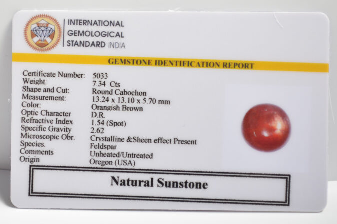 Beautiful 7.34 Cts Natural Sunstone (Top+-Mines) sva 8+ Ratti SUNSTONE. Free Horoscope & Free Pundit Ji Astrological Advise / Consultation. Original Natural Lab certified gems by IGI GTL / Birth stones / Large Gem Selection of shree shubh Rashi Ratan Vedic dhan at Gem Mines. May Bhagwan Brahma, Vishnu, Shiv & Universe bless you.