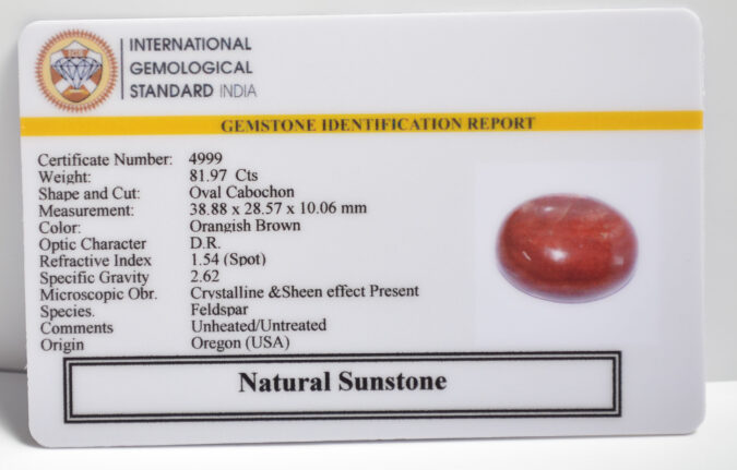 Beautiful 81.97 Cts Natural Sunstone (Top++-Mines) sva 91+ Ratti SUNSTONE. Free Horoscope & Free Pundit Ji Astrological Advise / Consultation. Original Natural Lab certified gems by IGI GTL / Birth stones / Large Gem Selection of shree shubh Rashi Ratan Vedic dhan at Gem Mines. May Bhagwan Brahma, Vishnu, Shiv & Universe bless you.