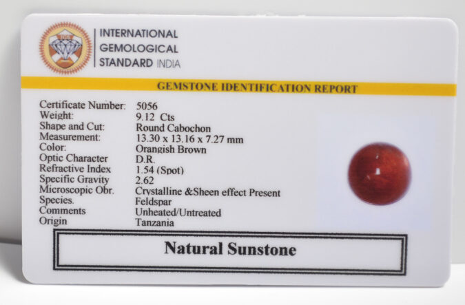 Beautiful 9.12 Cts Natural Sunstone (AAA+-Mines) sva 10+ Ratti SUNSTONE. Free Horoscope & Free Pundit Ji Astrological Advise / Consultation. Original Natural Lab certified gems by IGI GTL / Birth stones / Large Gem Selection of shree shubh Rashi Ratan Vedic dhan at Gem Mines. May Bhagwan Brahma, Vishnu, Shiv & Universe bless you.
