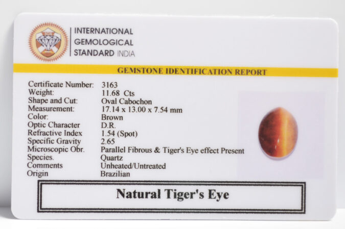Beautiful 11.68 Cts Natural Tiger’s Eye (Top-Mines) sva 12+ Ratti TIGER’S EYE. Free Horoscope & Free Pundit Ji Astrological Advise / Consultation. Original Natural Lab certified gems by IGI GTL / Birth stones / Large Gem Selection of shree shubh Rashi Ratan Vedic dhan at Gem Mines. May Bhagwan Brahma, Vishnu, Shiv & Universe bless you.
