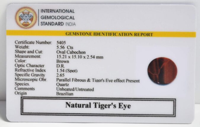 The Tiger Eye is a stunning gemstone cherished for its rich golden-brown luster and captivating chatoyancy. Its Tiger Eye benefits include enhancing confidence, courage, and personal strength while providing protection from negative energies. This powerful stone promotes mental clarity, focus, and wise decision-making, making it ideal for daily wear and spiritual growth. Tiger Eye is also believed to attract prosperity, success, and positivity while balancing emotional energy and reducing stress. Certified by IGI GTL, this authentic Tiger Eye combines beauty, durability, and metaphysical properties, offering both elegance and energetic support to its wearer in every aspect of life.