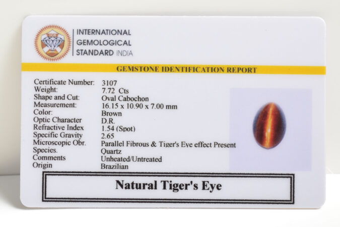 Beautiful 7.72 Cts Natural Tiger’s Eye (Top++-Mines) sva 8+ Ratti TIGER’S EYE. Free Horoscope & Free Pundit Ji Astrological Advise / Consultation. Original Natural Lab certified gems by IGI GTL / Birth stones / Large Gem Selection of shree shubh Rashi Ratan Vedic dhan at Gem Mines. May Bhagwan Brahma, Vishnu, Shiv & Universe bless you.