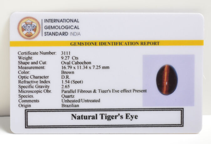Beautiful 9.27 Cts Natural Tiger’s Eye (Top++-Mines) sva 10+ Ratti TIGER’S EYE. Free Horoscope & Free Pundit Ji Astrological Advise / Consultation. Original Natural Lab certified gems by IGI GTL / Birth stones / Large Gem Selection of shree shubh Rashi Ratan Vedic dhan at Gem Mines. May Bhagwan Brahma, Vishnu, Shiv & Universe bless you.