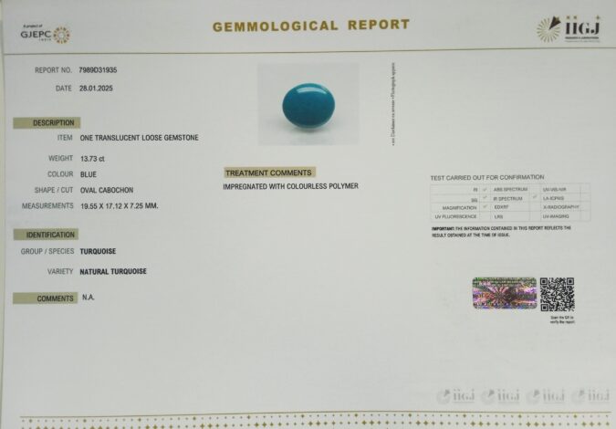 Beautiful 13.73 Ct. Natural Turquoise (Top++ Mines) sva 15+ Ratti Turquoise. Free Horoscope & Free Pundit Ji Astrological Advise / Consultation. Original Natural Lab certified gems by IGI GTL / Birth stones / Large Gem Selection of shree shubh Rashi Ratan Vedic dhan at Gem Mines. May Bhagwan Brahma, Vishnu, Shiv & Universe bless you.