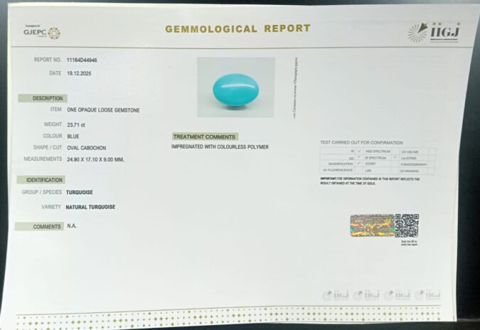 Beautiful 23.71 Cts Natural Turquoise (Firoza) (Top+-Mines) sva 26+ Ratti TURQUOISE. Free Horoscope & Free Pundit Ji Astrological Advise / Consultation. Original Natural Lab certified gems by IGI GTL / Birth stones / Large Gem Selection of shree shubh Rashi Ratan Vedic dhan at Gem Mines. May Bhagwan Brahma, Vishnu, Shiv & Universe bless you.