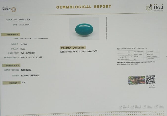 Beautiful 28.55 Ct. Natural Turquoise (Top++ Mines) sva 31+ Ratti Turquoise. Free Horoscope & Free Pundit Ji Astrological Advise / Consultation. Original Natural Lab certified gems by IGI GTL / Birth stones / Large Gem Selection of shree shubh Rashi Ratan Vedic dhan at Gem Mines. May Bhagwan Brahma, Vishnu, Shiv & Universe bless you.