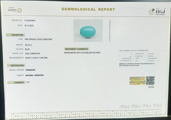Beautiful 29.23 Cts Natural Turquoise (Firoza) (Top+-Mines) sva 32+ Ratti TURQUOISE. Free Horoscope & Free Pundit Ji Astrological Advise / Consultation. Original Natural Lab certified gems by IGI GTL / Birth stones / Large Gem Selection of shree shubh Rashi Ratan Vedic dhan at Gem Mines. May Bhagwan Brahma, Vishnu, Shiv & Universe bless you.