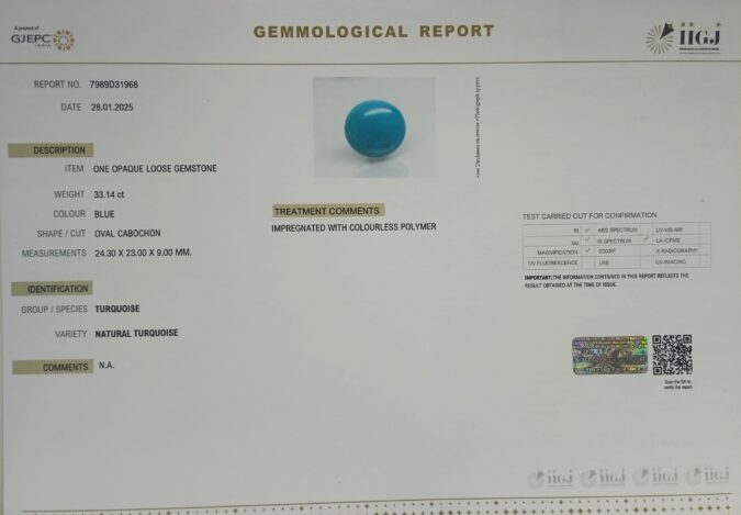 Beautiful 33.14 Ct. Natural Turquoise (Top++ Mines) sva 36+ Ratti Turquoise. Free Horoscope & Free Pundit Ji Astrological Advise / Consultation. Original Natural Lab certified gems by IGI GTL / Birth stones / Large Gem Selection of shree shubh Rashi Ratan Vedic dhan at Gem Mines. May Bhagwan Brahma, Vishnu, Shiv & Universe bless you.