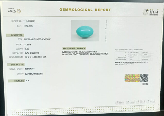 Beautiful 41.36 Cts Natural Turquoise (Firoza) (Top+-Mines) sva 45+ Ratti TURQUOISE. Free Horoscope & Free Pundit Ji Astrological Advise / Consultation. Original Natural Lab certified gems by IGI GTL / Birth stones / Large Gem Selection of shree shubh Rashi Ratan Vedic dhan at Gem Mines. May Bhagwan Brahma, Vishnu, Shiv & Universe bless you.