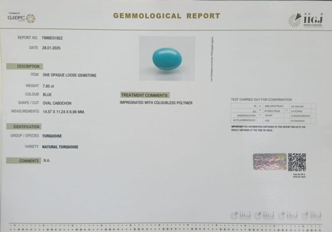 Beautiful 7.85 Ct. Natural Turquoise (Top++ Mines) sva 8+ Ratti Turquoise. Free Horoscope & Free Pundit Ji Astrological Advise / Consultation. Original Natural Lab certified gems by IGI GTL / Birth stones / Large Gem Selection of shree shubh Rashi Ratan Vedic dhan at Gem Mines. May Bhagwan Brahma, Vishnu, Shiv & Universe bless you.