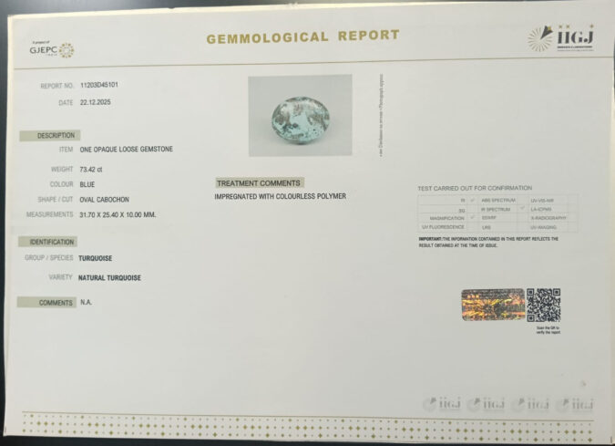 Beautiful 73.42 Cts Natural Turquoise (Firoza) (AAA-Mines) sva 81+ Ratti TURQUOISE. Free Horoscope & Free Pundit Ji Astrological Advise / Consultation. Original Natural Lab certified gems by IGI GTL / Birth stones / Large Gem Selection of shree shubh Rashi Ratan Vedic dhan at Gem Mines. May Bhagwan Brahma, Vishnu, Shiv & Universe bless you.