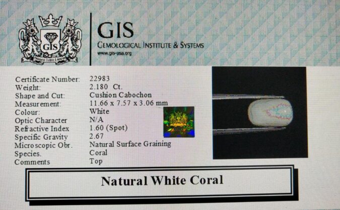 Beautiful 2.18 Ct. White Coral (Japanese Mines) Sava 2 Ratti Saphed Moonga. Free Horoscope & Free Pundit Ji Advise / Consultation. Original Natural Lab certified gems by IGI GTL / Birth stones / Large Gem Selection of shree shubh Rashi Ratan Vedic dhan at Gem Mines. May Bhagwan Brahma, Vishnu, Shiv & Universe bless you.