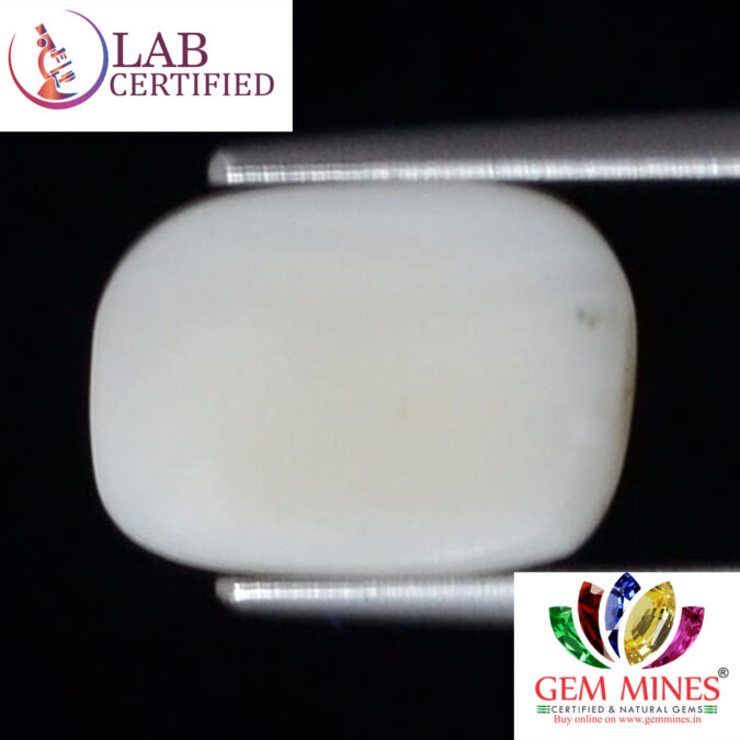 Beautiful 2.59 Ct. White Coral (Japanese Mines) Sava 2 Ratti Saphed Moonga. Free Horoscope & Free Pundit Ji Advise / Consultation. Original Natural Lab certified gems by IGI GTL / Birth stones / Large Gem Selection of shree shubh Rashi Ratan Vedic dhan at Gem Mines. May Bhagwan Brahma, Vishnu, Shiv & Universe bless you.