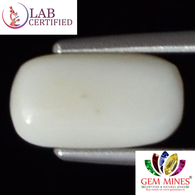 Beautiful 2.73 Ct. White Coral (Japanese Mines) Sava 3 Ratti Saphed Moonga. Free Horoscope & Free Pundit Ji Advise / Consultation. Original Natural Lab certified gems by IGI GTL / Birth stones / Large Gem Selection of shree shubh Rashi Ratan Vedic dhan at Gem Mines. May Bhagwan Brahma, Vishnu, Shiv & Universe bless you.