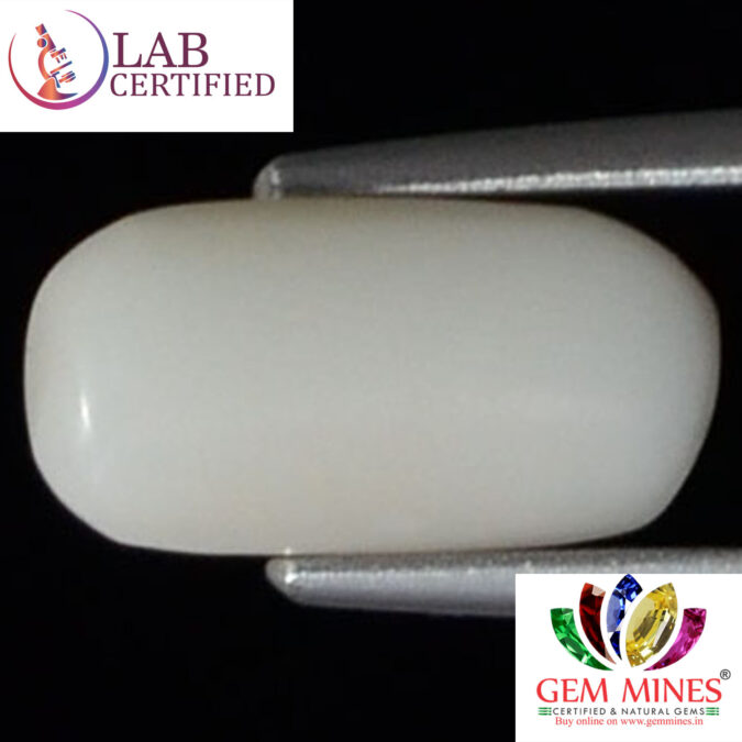 Beautiful 2.97 Ct. White Coral (Japanese Mines) Sava 3 Ratti Saphed Moonga. Free Horoscope & Free Pundit Ji Advise / Consultation. Original Natural Lab certified gems by IGI GTL / Birth stones / Large Gem Selection of shree shubh Rashi Ratan Vedic dhan at Gem Mines. May Bhagwan Brahma, Vishnu, Shiv & Universe bless you.