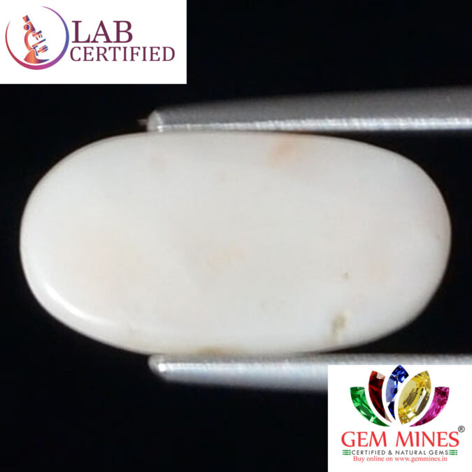 Beautiful 3.33 Ct. White Coral (Japanese Mines) Sava 3 Ratti Saphed Moonga. Free Horoscope & Free Pundit Ji Advise / Consultation. Original Natural Lab certified gems by IGI GTL / Birth stones / Large Gem Selection of shree shubh Rashi Ratan Vedic dhan at Gem Mines. May Bhagwan Brahma, Vishnu, Shiv & Universe bless you.
