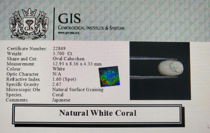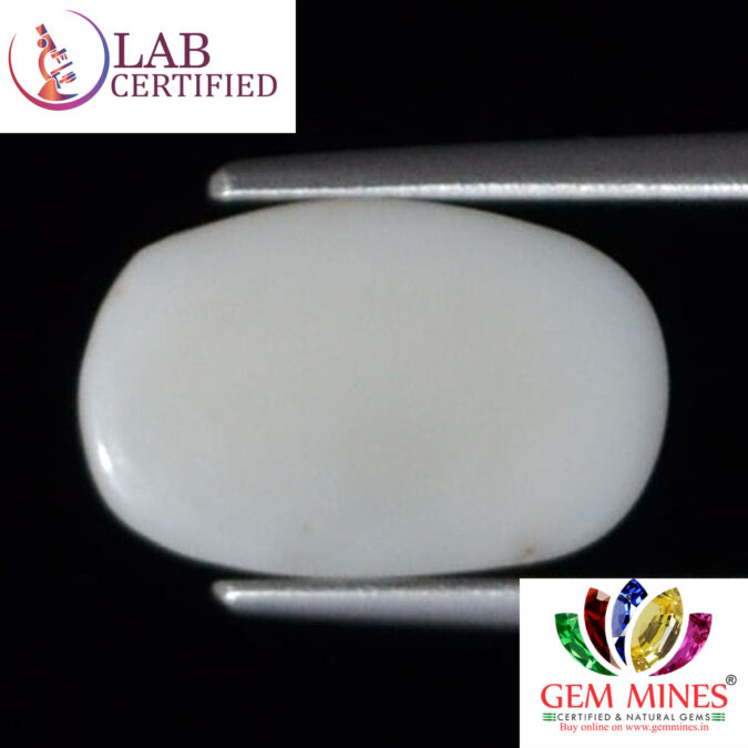 Beautiful 3.7 Ct. White Coral (Japanese Mines) Sava 4 Ratti Saphed Moonga. Free Horoscope & Free Pundit Ji Advise / Consultation. Original Natural Lab certified gems by IGI GTL / Birth stones / Large Gem Selection of shree shubh Rashi Ratan Vedic dhan at Gem Mines. May Bhagwan Brahma, Vishnu, Shiv & Universe bless you.