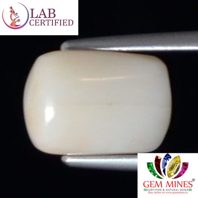 Beautiful 3.82 Ct. White Coral (Japanese Mines) Sava 4 Ratti Saphed Moonga. Free Horoscope & Free Pundit Ji Advise / Consultation. Original Natural Lab certified gems by IGI GTL / Birth stones / Large Gem Selection of shree shubh Rashi Ratan Vedic dhan at Gem Mines. May Bhagwan Brahma, Vishnu, Shiv & Universe bless you.