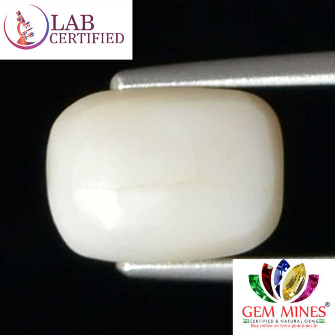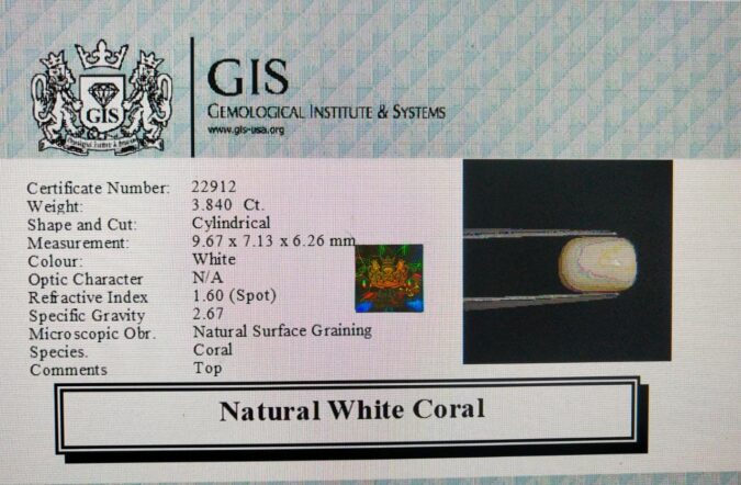Beautiful 3.84 Ct. White Coral (Japanese Mines) Sava 4 Ratti Saphed Moonga. Free Horoscope & Free Pundit Ji Advise / Consultation. Original Natural Lab certified gems by IGI GTL / Birth stones / Large Gem Selection of shree shubh Rashi Ratan Vedic dhan at Gem Mines. May Bhagwan Brahma, Vishnu, Shiv & Universe bless you.