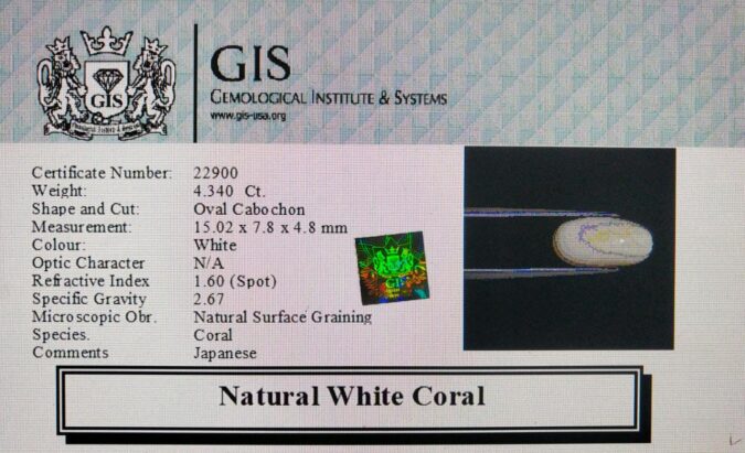 Beautiful 4.34 Ct. White Coral (Japanese Mines) Sava 4 Ratti Saphed Moonga. Free Horoscope & Free Pundit Ji Advise / Consultation. Original Natural Lab certified gems by IGI GTL / Birth stones / Large Gem Selection of shree shubh Rashi Ratan Vedic dhan at Gem Mines. May Bhagwan Brahma, Vishnu, Shiv & Universe bless you.