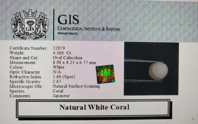 Beautiful 4.36 Ct. White Coral (Japanese Mines) Sava 4 Ratti Saphed Moonga. Free Horoscope & Free Pundit Ji Advise / Consultation. Original Natural Lab certified gems by IGI GTL / Birth stones / Large Gem Selection of shree shubh Rashi Ratan Vedic dhan at Gem Mines. May Bhagwan Brahma, Vishnu, Shiv & Universe bless you.