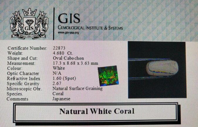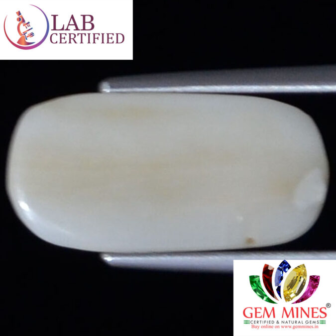 Beautiful 4.68 Ct. White Coral (Japanese Mines) Sava 5 Ratti Saphed Moonga. Free Horoscope & Free Pundit Ji Advise / Consultation. Original Natural Lab certified gems by IGI GTL / Birth stones / Large Gem Selection of shree shubh Rashi Ratan Vedic dhan at Gem Mines. May Bhagwan Brahma, Vishnu, Shiv & Universe bless you.