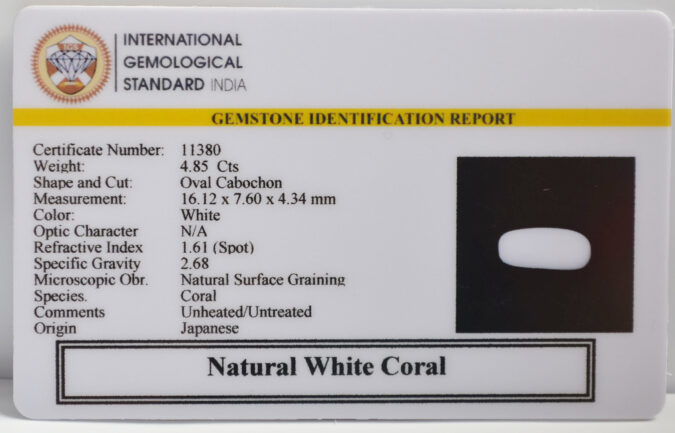 Certified Natural White Coral 4.85 Ct.(5+ Ratti) in Oval Cabochon shape
